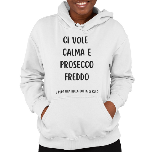 Felpa con Cappuccio Donna "Ci vuole calma e prosecco freddo"