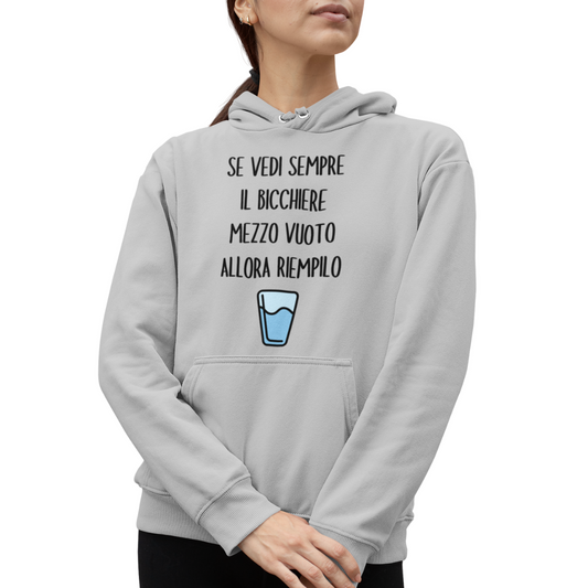 Felpa con Cappuccio Donna "Se vedi sempre il bicchiere mezzo vuoto"