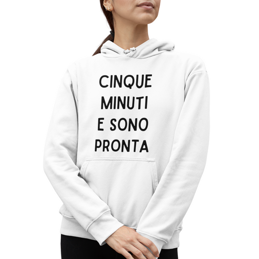 Felpa con Cappuccio Donna "Cinque minuti e sono pronta"